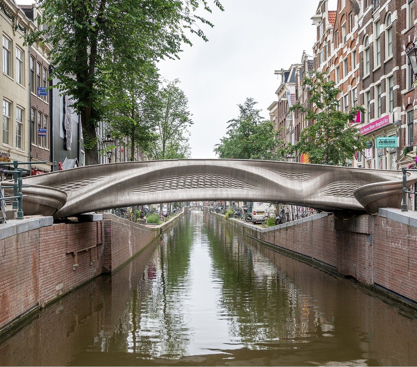 MX3D 3D printed a fully functional stainless steel bridge to cross one of the oldest and most famous canals in the centre of Amsterdam.