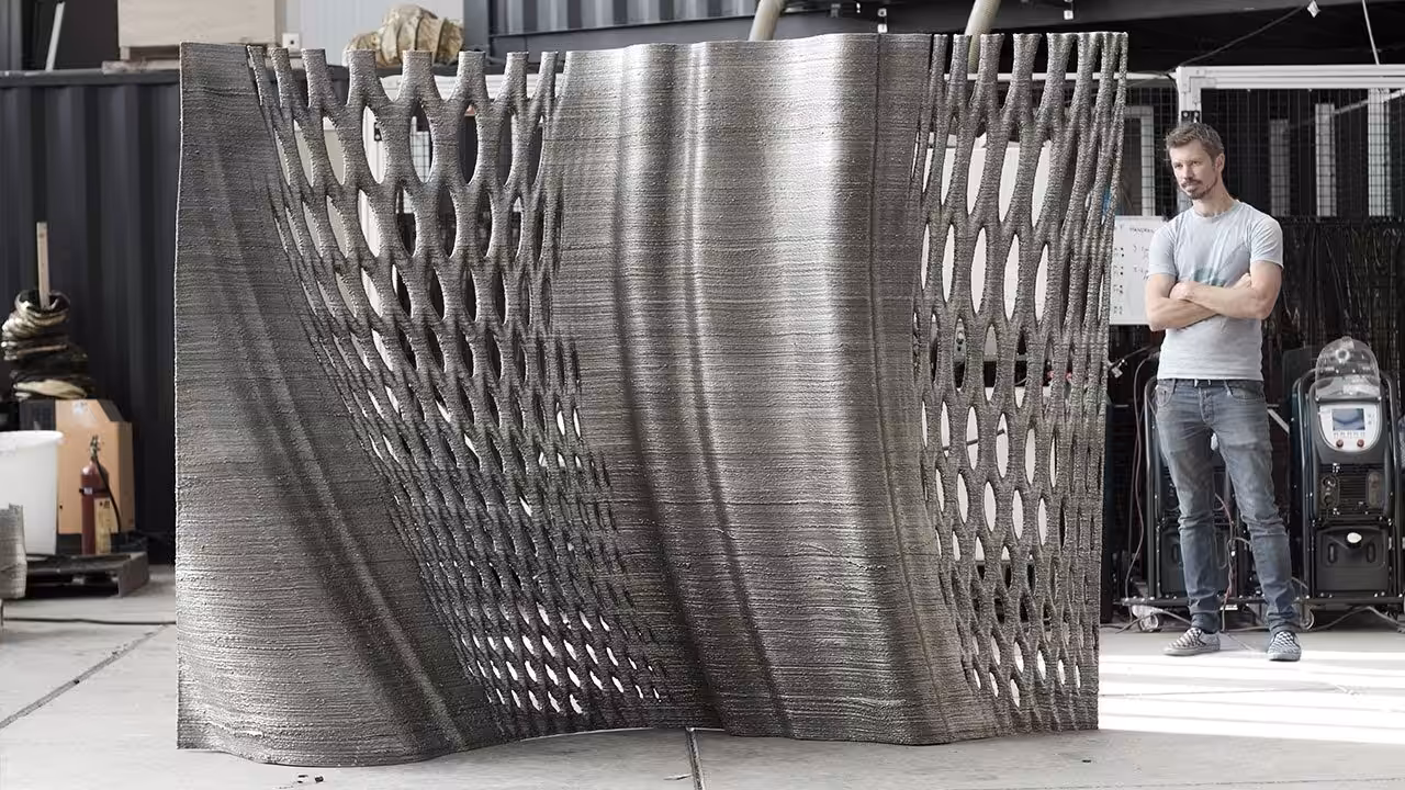This experimental sculptural work, produced by MX3D and designed by Joris Laarman, is part of a collection of sculptural screens in varying sizes, geometries and materials. Even multi-material gradients from bronze to steel are in the planning. The computationally generated aesthetics of the screens are not just pleasing to the eye but are also pushing the boundaries of our technology. 3D printing on this scale is unexplored territory so we are learning as we develop new sculptural work. For every new form language a specific strategy is developed resulting in large a library of strategies that will become self learning in the near future.