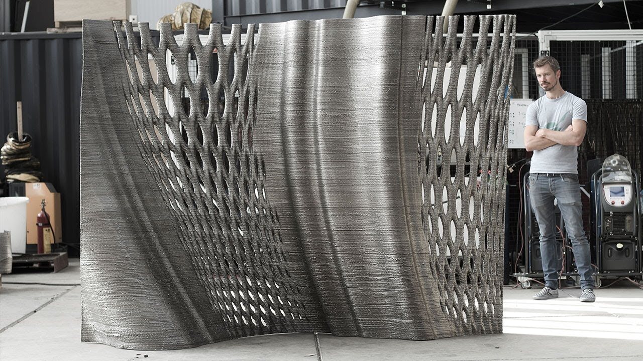 This experimental sculptural work, produced by MX3D and designed by Joris Laarman, is part of a collection of sculptural screens in varying sizes, geometries and materials. Even multi-material gradients from bronze to steel are in the planning. The computational generated esthetics of the screens are not just pleasing for the eye but are also pushing the boundaries of our technology. 3d printing on this scale is unexplored territory so we are learning as we develop new sculptural work. For every new form language a specific strategy is developed resulting in large a library of strategies that will become self learning in the near future.