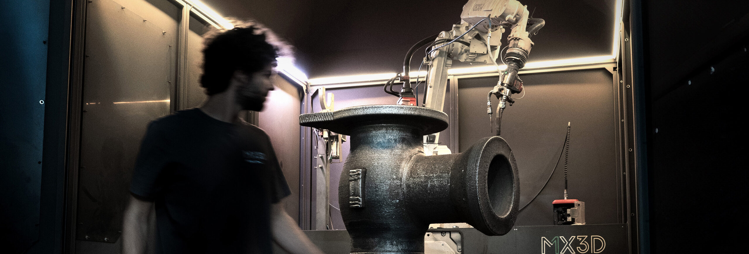 At MX3D, we’re more than a company; we’re pioneers in the future of 3D metal printing. Using Robotic Wire Arc Additive Manufacturing (WAAM), we’ve redefined what’s possible. Our groundbreaking creations include the world’s first fully functional 12-meter stainless-steel pedestrian bridge, and our cutting-edge robotic printing solutions are pushing manufacturing into tomorrow.